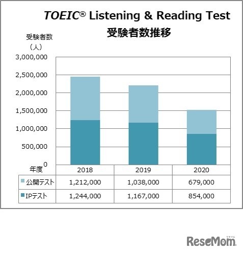 国際ビジネスコミュニケーション協会(IIBC)は2021年5月13日、TOEIC Programの2020年度受験者数を発表した。TOEIC Programの総受験者数は約169万人。2020年度のTOEIC Listening & Reading Testは、新型コロナウイルスの影響により4月・5月・6月のテストを中止した。