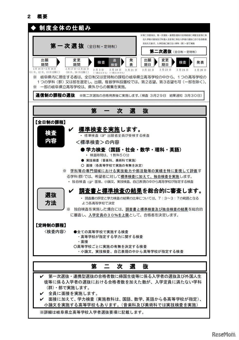 【高校受験2022】岐阜県公立高入試の日程&概要、学力検査は3/3 3枚目の写真・画像