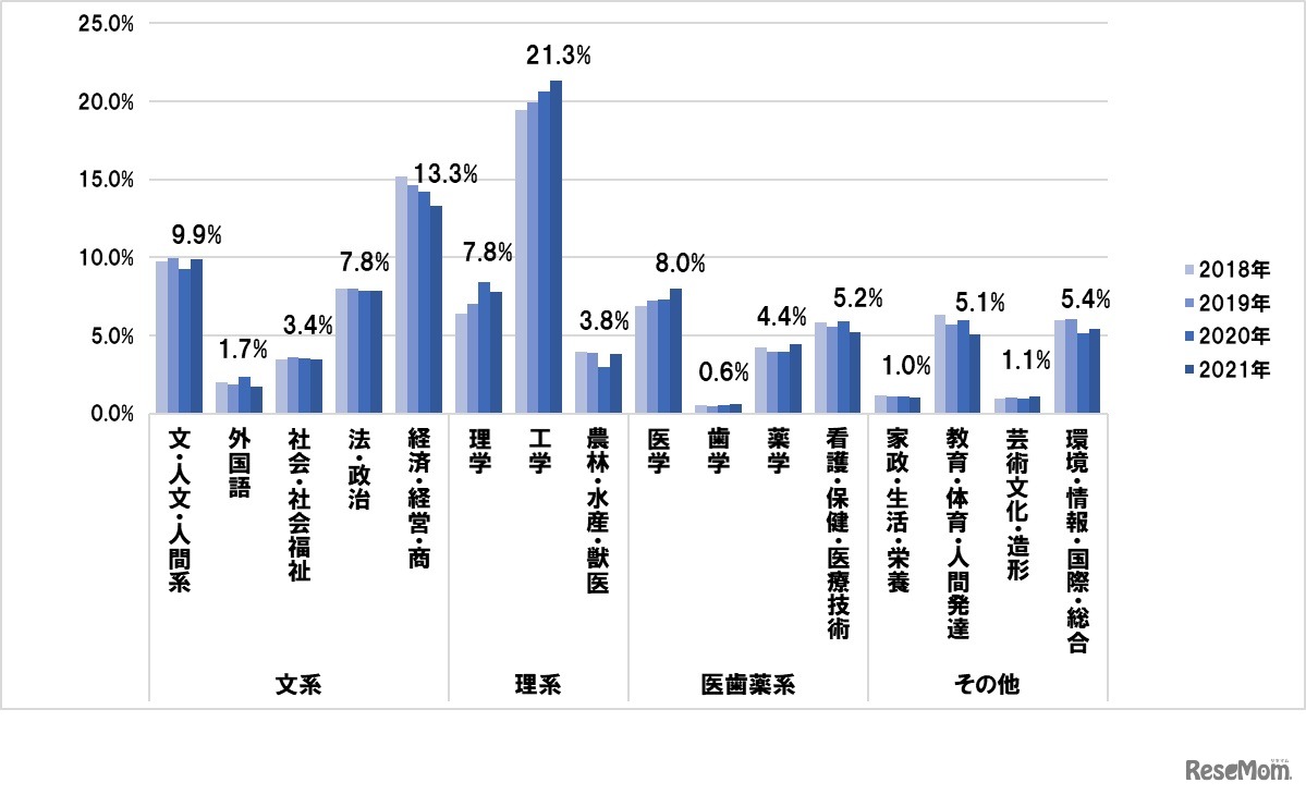 画像出典:ナガセ 学部系統別の志願者占有率の推移