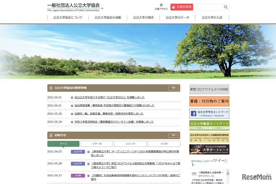 公立大学協会は2021年5月24日、公立大学全校を紹介する冊子「公立大学2021」を発行した。各校の概要を写真と文章で紹介している。「公立大学2021」は公立大学協会のWebサイトで閲覧できる。