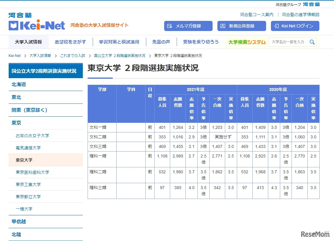 河合塾の大学入試情報サイト「Kei-Net」は2021年6月11日、国立大学2段階選抜実施状況について、2020年度と2021年度の2年分を大学別にまとめて掲載した。