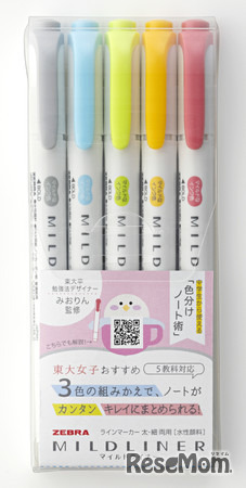 ゼブラは2021年7月21日、「マイルドライナー東大女子おすすめ5色セット」を数量限定で発売する。東大卒の勉強法デザイナーみおりん監修の商品で、簡単に東大生のノートの取り方を真似できる。