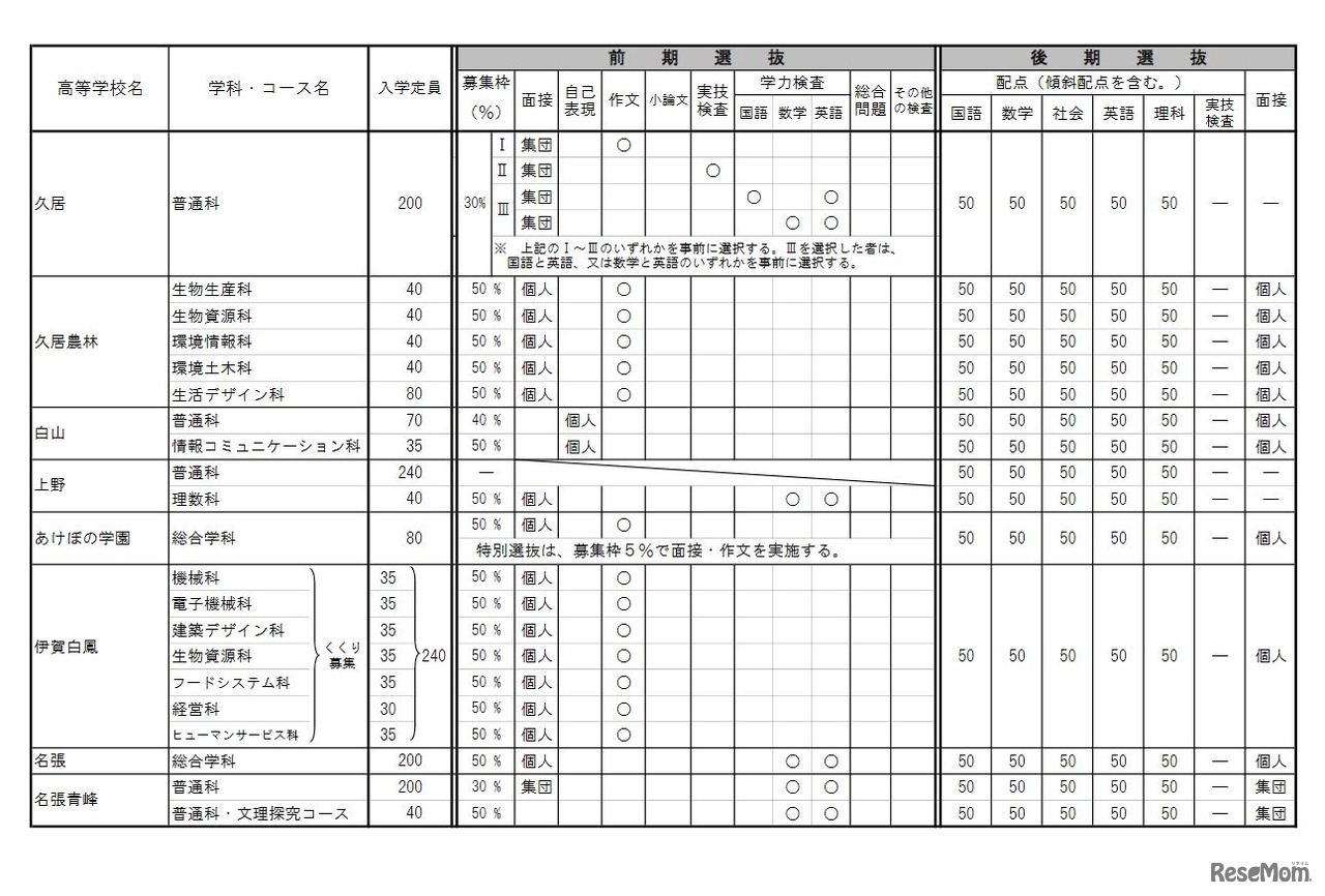 画像出典:三重県教育委員会 2022年度三重県立高等学校入学者選抜に関する各高等学校別実施要項(全日制)