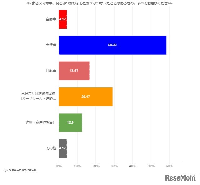 歩きスマホ中、ぶつかったことのあるもの (c) 交通事故弁護士相談広場