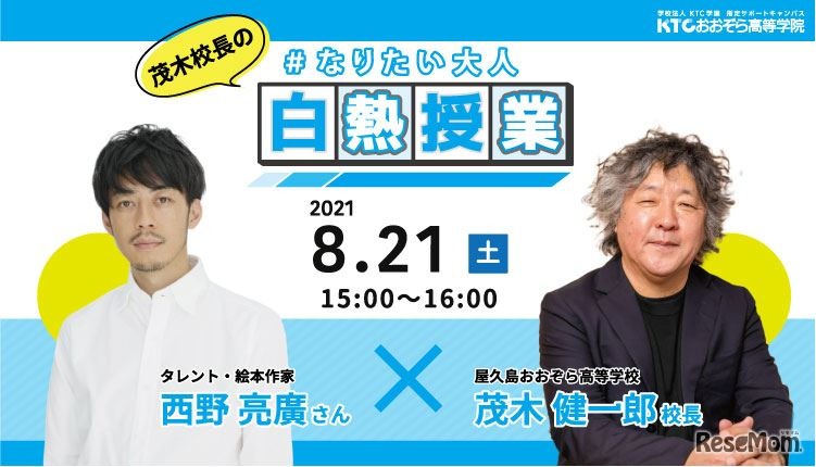 広域通信制・屋久島おおぞら高等学校は2021年8月21日、全国の中高生へ向けて「中高生のいま、やっておきたいこと」をテーマにオンライン授業を実施する。タレントで絵本作家の西野亮廣さんと脳科学者の茂木健一郎校長が対談する。