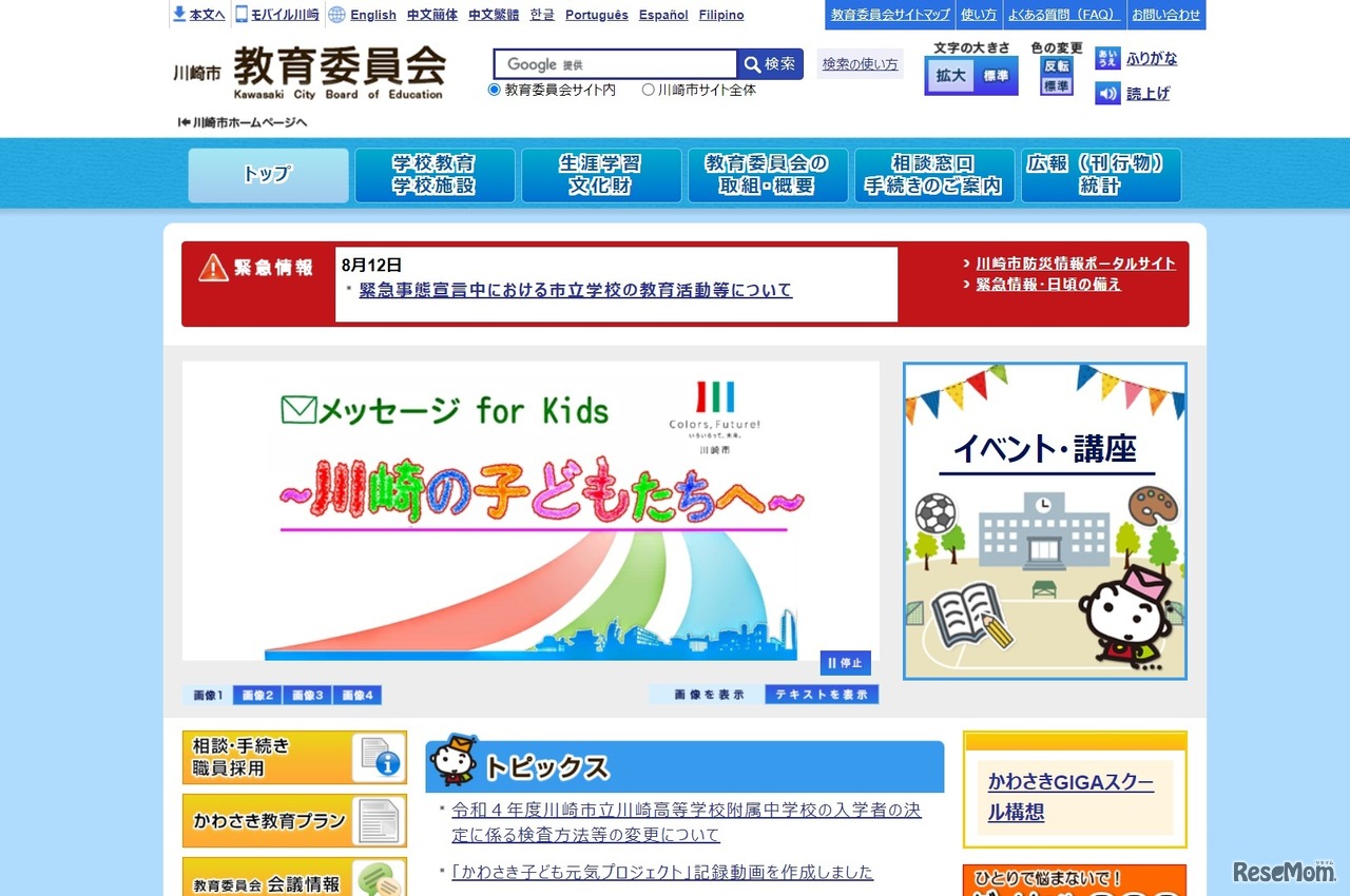川崎市教育委員会は2021年8月3日、令和4年度(2022年度)川崎市立川崎高等学校附属中学校の入学者の決定に係る検査方法等の変更について公表した。新型コロナウイルス感染拡大防止の観点から、2022年度は面接を中止し、作文を含む適性検査のみ実施する。