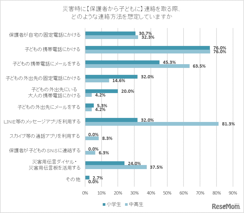 「災害時に【保護者から子どもに】連絡を取る際、どのような連絡方法を想定していますか」