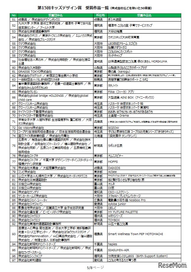 画像出典:キッズデザイン協議会 第15回キッズデザイン賞 受賞作品一覧