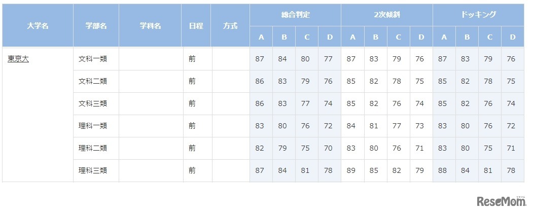 ベネッセマナビジョンは、高校3年生・高卒生対象の模試「進研模試 総合学力記述模試・7月」のデータと2021年度入試結果に基づいた「合格可能性判定基準」を公開した。合格可能性80%以上の偏差値は、東京大学の文科一類が87、理科三類が87。