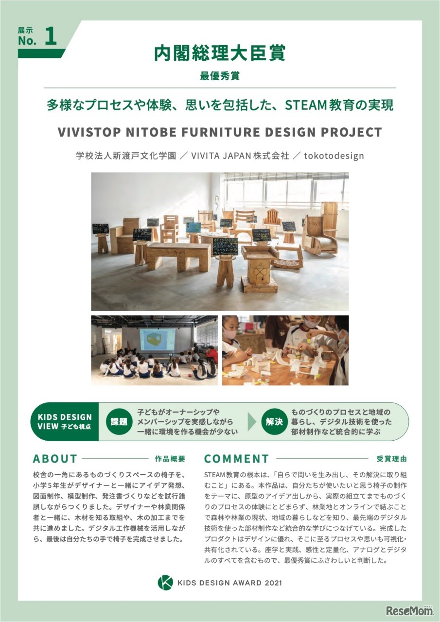 画像出典:キッズデザイン協議会 第15回キッズデザイン賞 内閣総理大臣賞最優秀賞「VIVISTOP NITOBE FURNITURE DESIGN PROJECT」