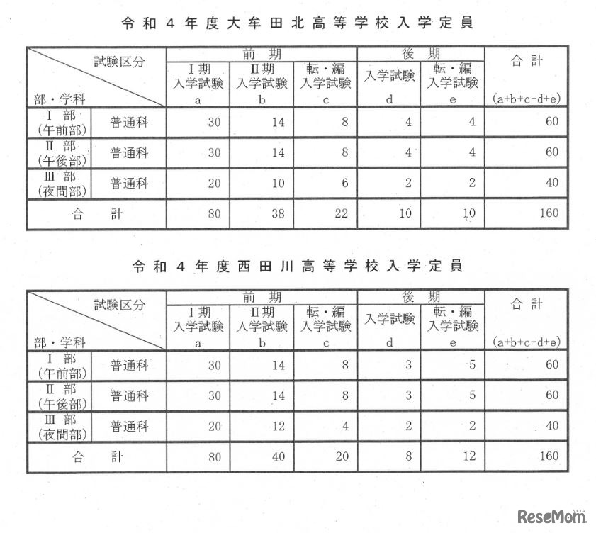 画像出典:福岡県 2022年度大牟田北高校・西田川高校入学定員