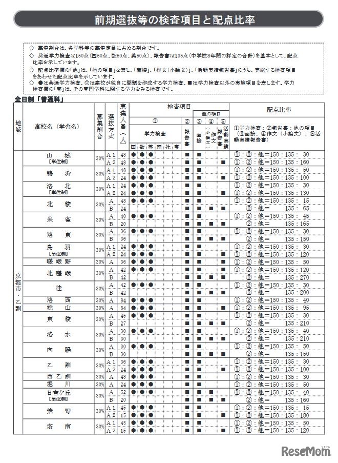 京都府教育委員会と京都市教育委員会は、2022年度(令和4年度)京都府公立高等学校入学者選抜の概要と前期選抜等実施要項を公表した。前期選抜は2022年2月16日・17日に検査を実施。実施要項には、各校の前期選抜における選抜方式や配点、募集人員等を掲載している。