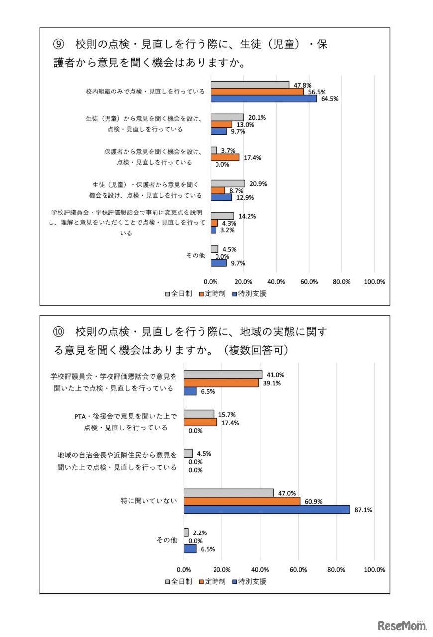 画像出典:埼玉県教育局 校則の点検・見直しを行う際に、生徒(児童)・保護者から意見を聞く機会はあるか、他