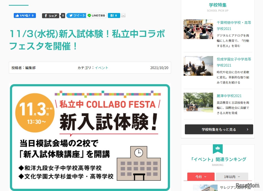 【中学受験】新入試体験!私立中コラボフェスタ11/3 1枚目の写真・画像
