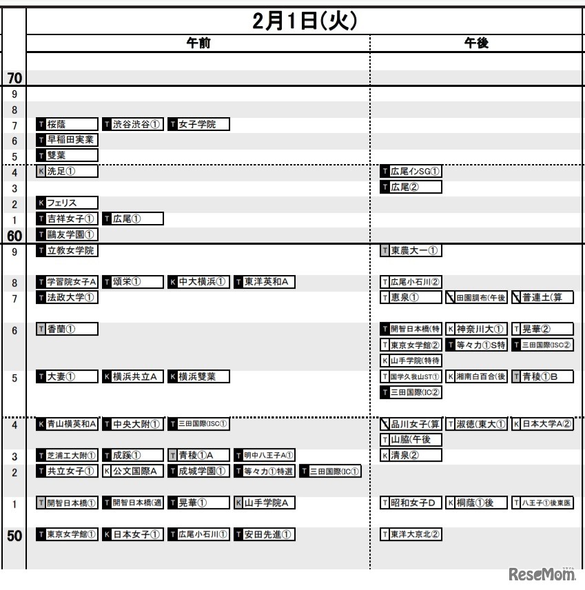 画像出典:日能研 日能研「予想R4偏差値一覧」首都圏10月14日版・女子2月1日