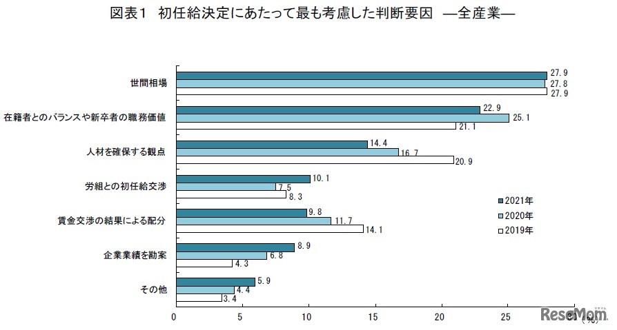 画像出典:日本経済団体連合会 初任給決定にあたってもっとも考慮した判断要因