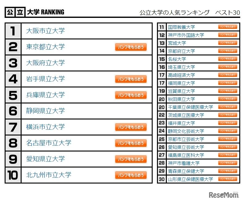 高校生20万1,286人が答えた「大学人気ランキング」1位は、国立が「東京大学」、公立が「大阪市立大学」、私立が「青山学院大学」であることが、JSコーポレーションが2021年11月30日に集計した結果より明らかになった。Webサイトでは各上位30大学を掲載している。