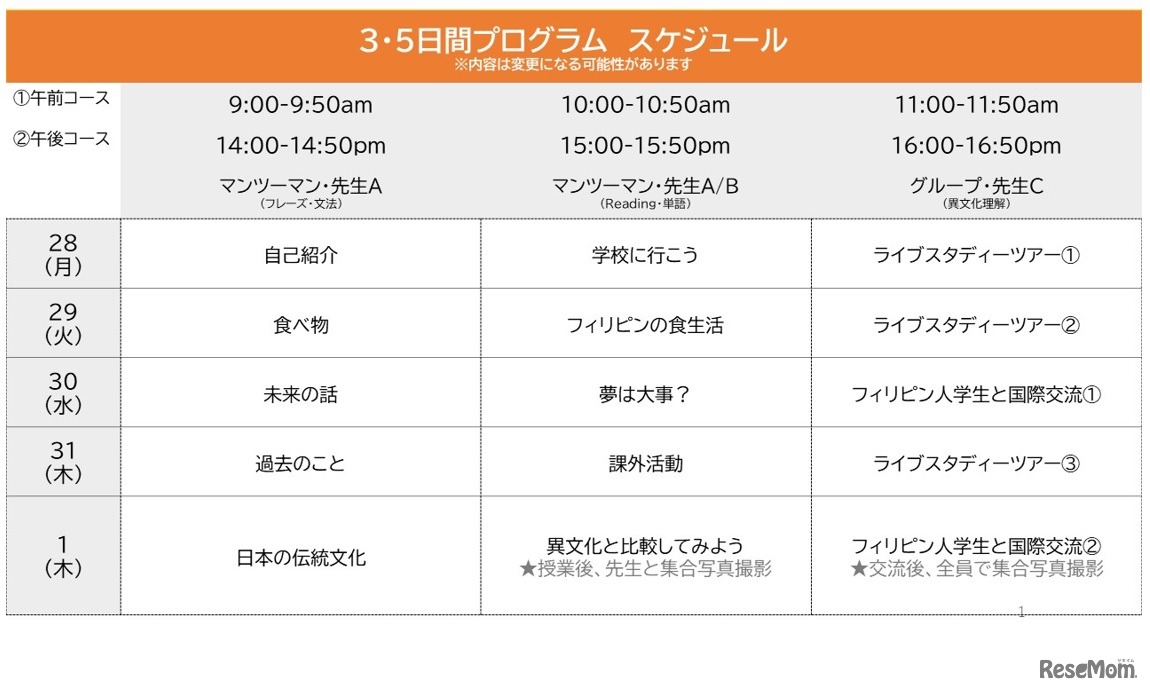 Classmate(クラスメイト)は、春休み期間限定で、中学生・高校生にオンライン留学を提供する。マンツーマンレッスン、ライブスタディーツアーやフィリピン現地の学生たちとオンライン国際交流を通じて、英語×異文化理解×異文化コミュニケーションを学ぶ。