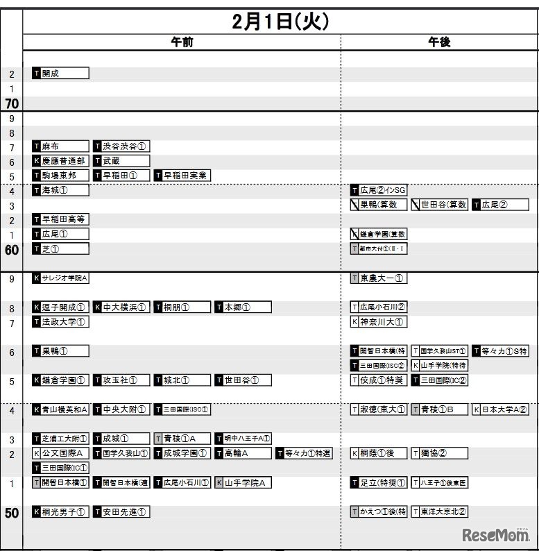 日能研「予想R4偏差値一覧」首都圏11月22日版・男子2月1日