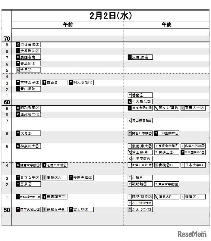 日能研「予想R4偏差値一覧」首都圏11月22日版・女子2月2日