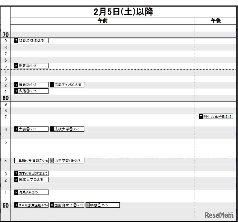 日能研「予想R4偏差値一覧」首都圏11月22日版・女子2月5日~