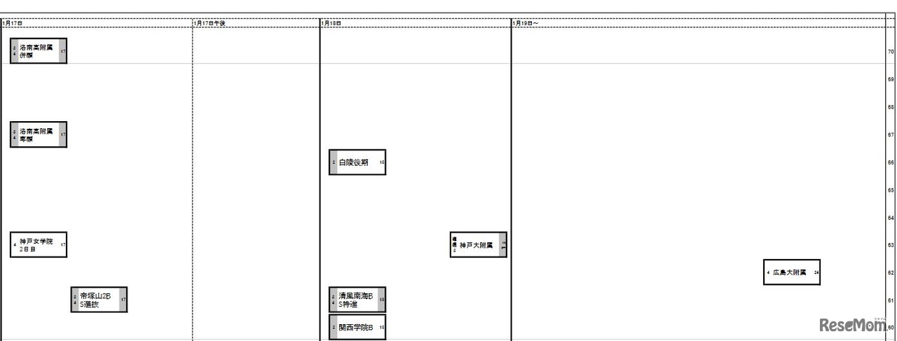 画像出典:日能研 日能研「予想R4偏差値一覧」関西11月15日版・女子1月17日~