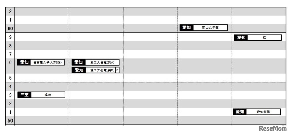 画像出典:日能研 日能研「予想R4偏差値一覧」東海11月版・女子