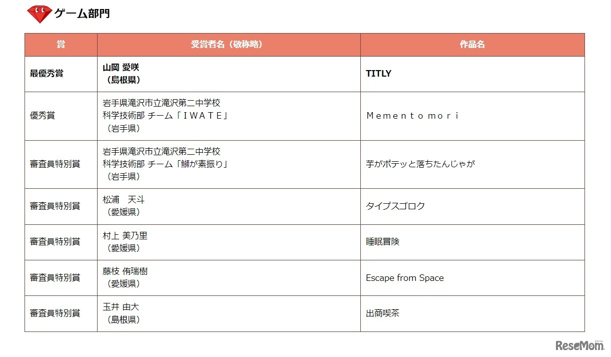 「中高生国際Rubyプログラミングコンテスト2021 in Mitaka」の最終審査発表会が2021年12月4日に開催され、最優秀賞・優秀賞・審査員特別賞の各賞が決定した。ゲーム部門では、島根県の山岡愛咲さんの作品「TITLY(タイトリー)」が最優秀賞を受賞した。