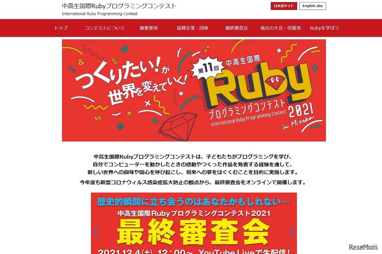「中高生国際Rubyプログラミングコンテスト2021 in Mitaka」の最終審査発表会が2021年12月4日に開催され、最優秀賞・優秀賞・審査員特別賞の各賞が決定した。ゲーム部門では、島根県の山岡愛咲さんの作品「TITLY(タイトリー)」が最優秀賞を受賞した。