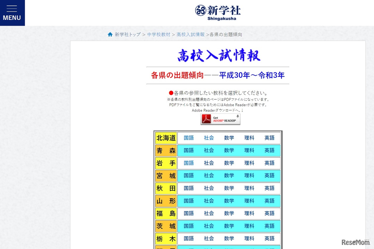新学社は2021年11月30日、2022年度公立高校入試に向けて、47都道府県の過去4年分の出題傾向を公表した。国語・数学・英語・理科・社会の各教科について、傾向と対策をWebサイトにまとめている。