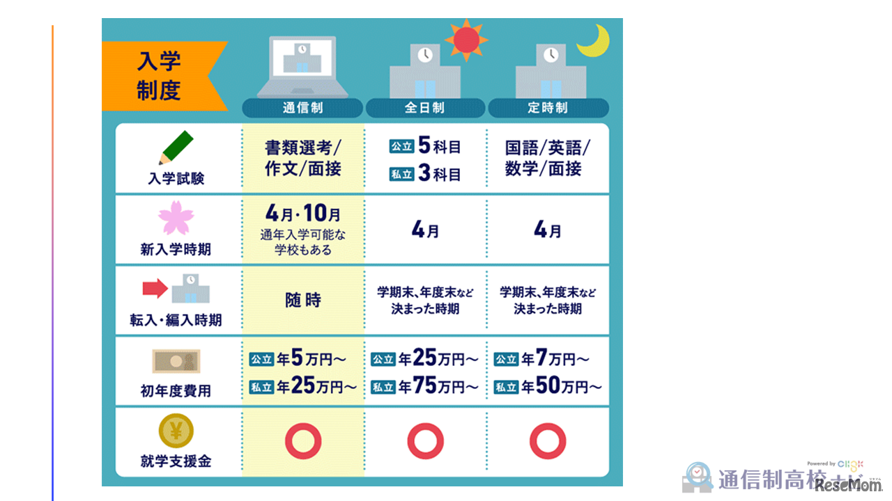 資料提供:通信制高校ナビ 通信制高校の入学制度