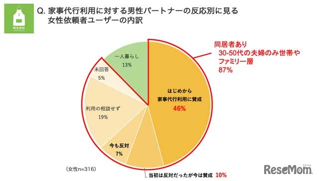 家事代行利用に対する男性パートナーの反応別による女性ユーザーの内訳