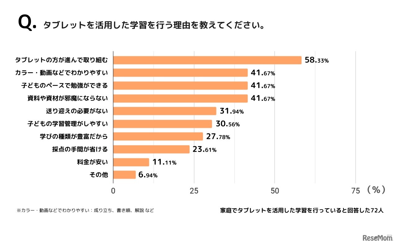 画像出典:千「漢字に関する保護者の意識調査」 タブレットを活用した学習を行う理由