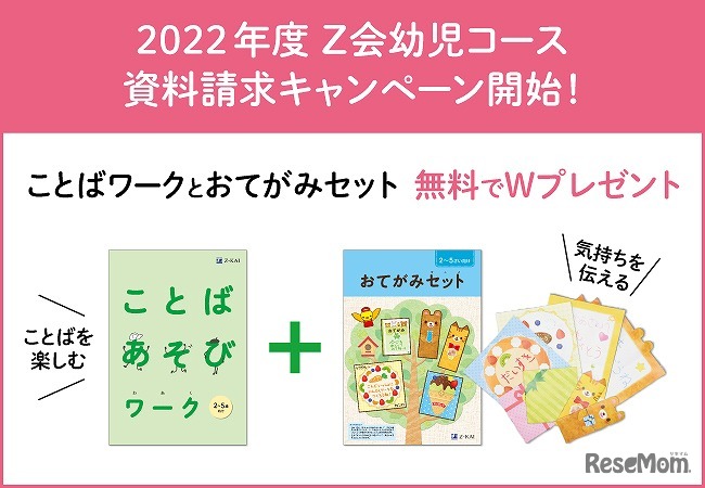 Z会は2022年3月31日まで、「Z会の通信教育」春の資料請求キャンペーンを実施している。2022年度の幼児コースまたは小学生向けコースの資料を請求した者には、実際の教材が試せる「おためし教材」の他、無料プレゼントを進呈する。