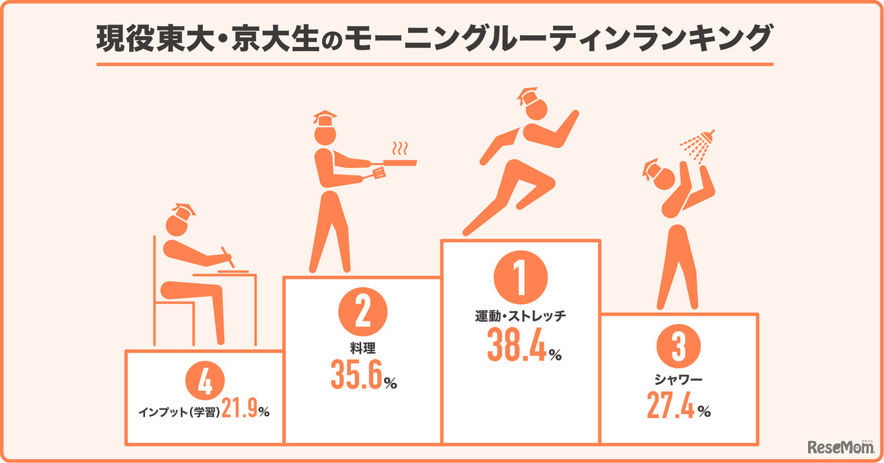 現役東大・京大生の73.0%が朝なにかしらのルーティンがあり、1位は「運動・ストレッチ」であることが、auコマース&ライフの調査結果より明らかになった。