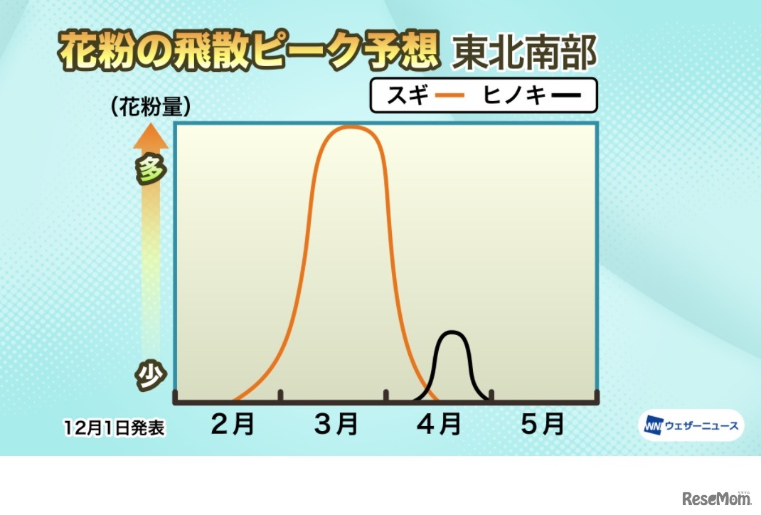 花粉の飛散ピーク予想:東北南部