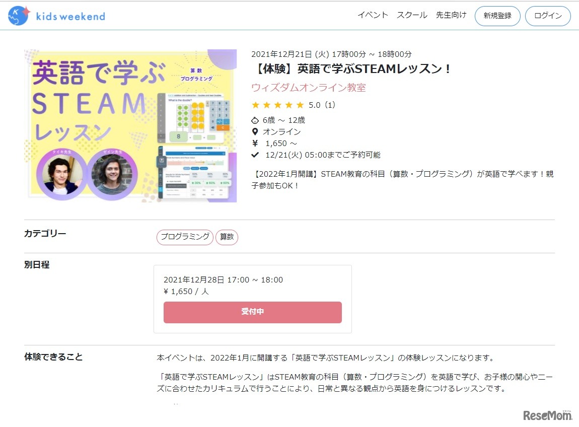 国際サバイバル(国サバ)は、ウィズダムアカデミー(ウィズダムアカデミー)と連携し、小学生向けの算数とプログラミングに特化したオンライン習い事パッケージ「英語で学ぶSTEAMレッスン」を2022年1月4日から3月22日までの期間、実施する。Zoomを利用。