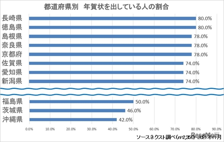 年賀状、出した人の割合「沖縄」が最少…最多は? 2枚目の写真・画像