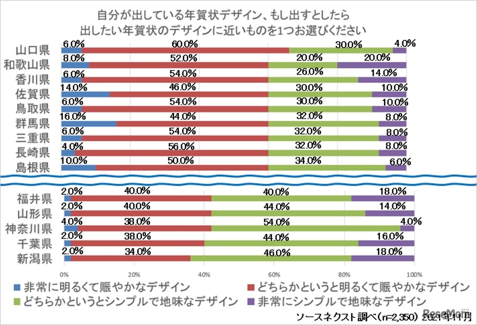 ソースネクストは、2021年11月に「47都道府県別 年賀状についての実態調査」を実施。年賀状を出している・もらっている割合や、年賀状のデザイン等の実態が明らかになった。