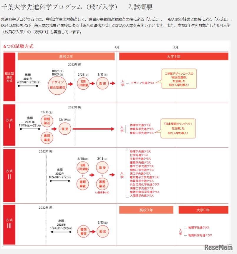 千葉大学は2022年1月9日、先進科学プログラム(飛び入学)のオンライン説明会を開催する。プログラム全体の紹介や分野別説明を行う。申込締切は1月4日。