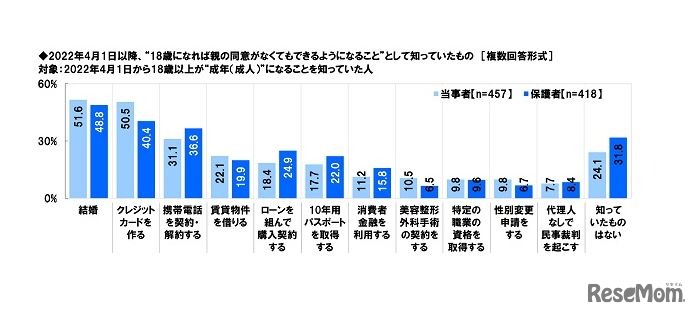 民法改正により2022年4月1日から18歳以上が成年(成人)となることを知っている人は、当事者91%、保護者84%であることが、ソニー生命保険の調査結果からわかった。成年年齢引下げに対する気持ちは、当事者・保護者ともに「楽しみ」よりも「不安」が上回った。