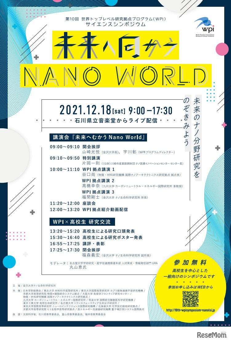 金沢大学ナノ生命科学研究所は2021年12月18日、高校生を対象に、「未来へ向かうNano World」をテーマとしたイベント「第10回WPIサイエンスシンポジウム」をライブ配信で開催する。事前予約制。