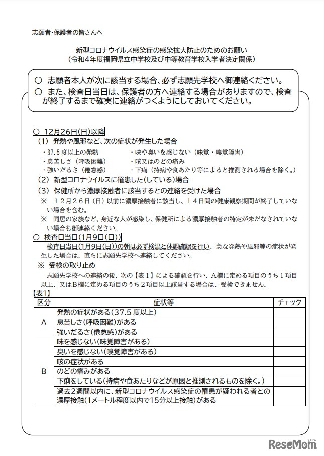 画像出典:福岡県教育委員会 新型コロナウイルス感染症の感染拡大防止のためのお願い(一部)