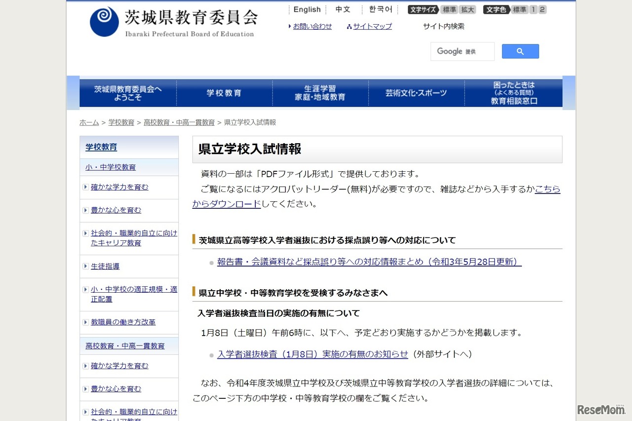 茨城県教育委員会は2021年12月14日、2022年度(令和4年度)茨城県立中学校・中等教育学校入学者選抜において、合格者のうち希望者に対し、入学後に解答用紙の写しの交付期間を設定し、交付すると発表した。