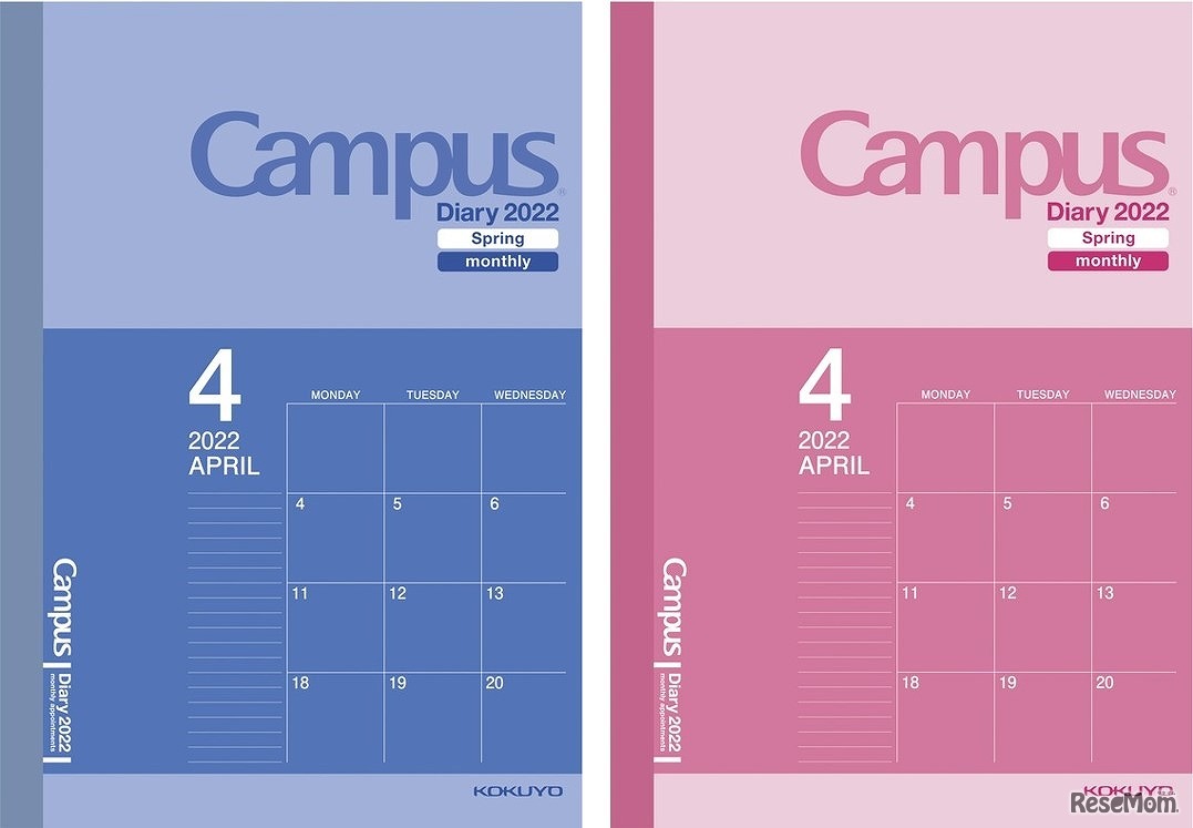 コクヨは、キャンパスノートと同じコクヨオリジナル原紙を使用したシンプルな手帳「キャンパスダイアリー」シリーズより、マンスリータイプの4月始まり版を、2022年1月中旬より順次発売する。