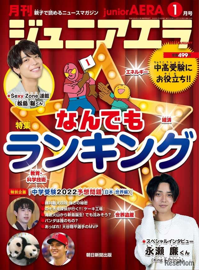 朝日新聞出版は2021年12月15日、小中学生向けニュース月刊誌「ジュニアエラ」1月号を発売した。スペシャル企画は、King&Prince永瀬廉が「挑戦することの素晴らしさ」について伝える。Sexy Zone連載には、松島聡が登場する。価格は499円(税込)。