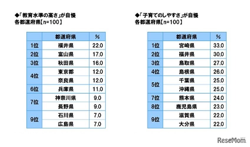 「教育水準の高さ自慢」で「福井県」が2年連続の1位となったことが2021年12月15日、ソニー生命保険の「47都道府県別 生活意識調査2021」の結果からわかった。子育てしやすさ自慢は、前年1位の「福井県」を抑えて、「宮崎県」がトップとなった。