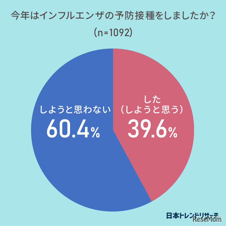 新型コロナワクチンの3回目接種が話題となる中、NEXERが運営する日本トレンドリサーチは、インフルエンザ予防接種に関するアンケート結果を公開。2021年は、60.4%がインフルエンザ予防接種を「しようと思わない」と回答した。