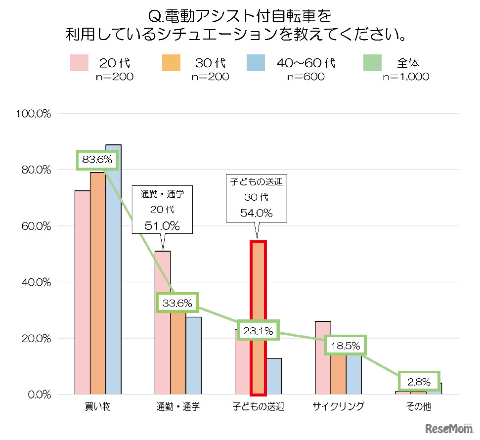 au損保が全国の自転車利用者を対象に行った調査結果によると、電動アシスト付自転車の保有率は17.6%、年代別では30代では約4人に1人と、最多となった。電動アシスト付自転車での子供送迎中のヒヤリハット経験は61.5%で、うち7割は「バランスが崩れた」と回答した。