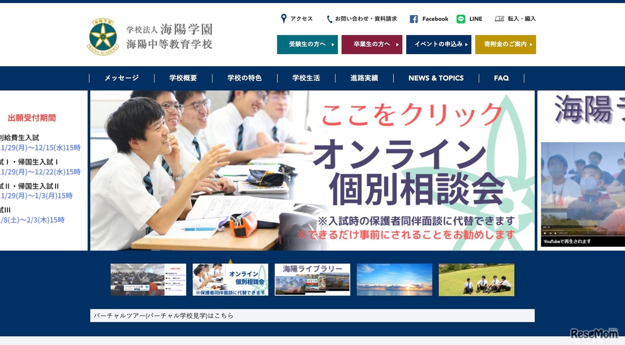 海陽中等教育学校は2021年12月18日、「特別給付生入試」を実施し、合格発表を行なった。募集人員約20名に対して259名が出願、受験し、合格者は98名。実質倍率は2.64倍。